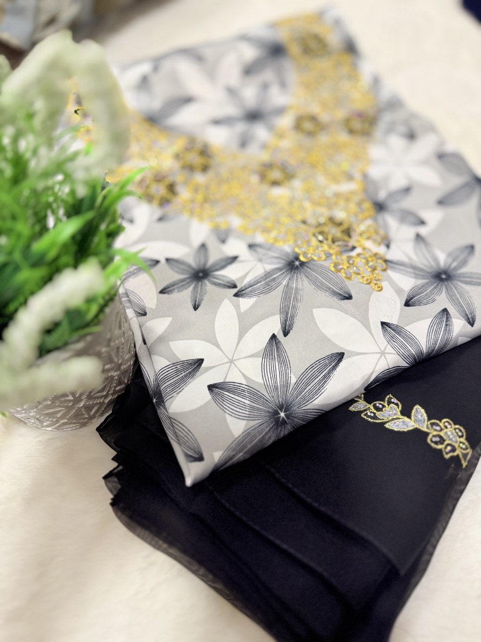اختبر الأناقة والراحة مع مخورنا المصنوع من الحرير الإندونيسي الفاخر باللون الأسود الكلاسيكي. تصميم غير مفصل مع شيلة خاصة به يمنحك حرية الحركة وأناقة لا مثيل لها، مناسب لجميع المناسبات والاستخدام اليومي.